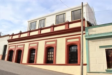 Edificio desarrollado en dos etapas, construcción tradicional y fachada con arquitectura colonial.